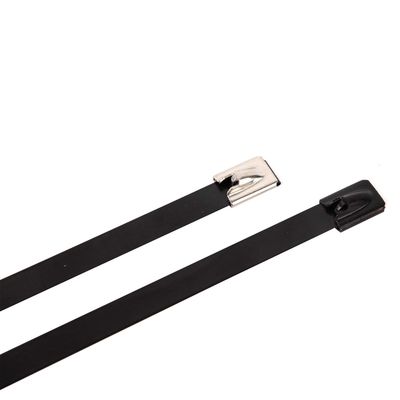 SS304 Black Coated Stainless Steel Cable Tie 7.87 Inch 0.4mm Thickness